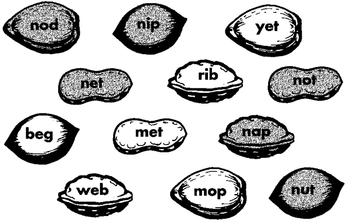 Write the six words that do not begin with an n. Underline the vowel in each word. (yet, rib, beg, met, web, mop) How many words did begin with an n? Write the number in the bottom right-hand corner of your paper. (6)