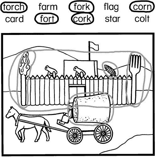 Write the five words you circled on another sheet of paper. (torch, fort, fork, cork corn) Write five sentences using your five new words. You should have at least six words in each sentence.